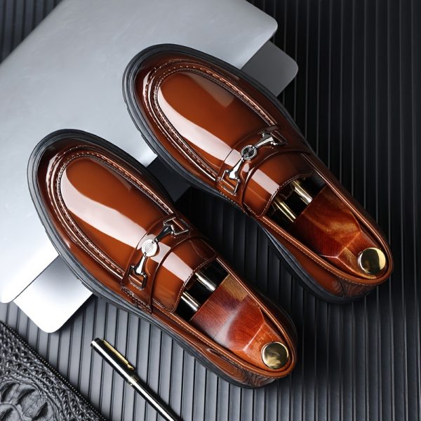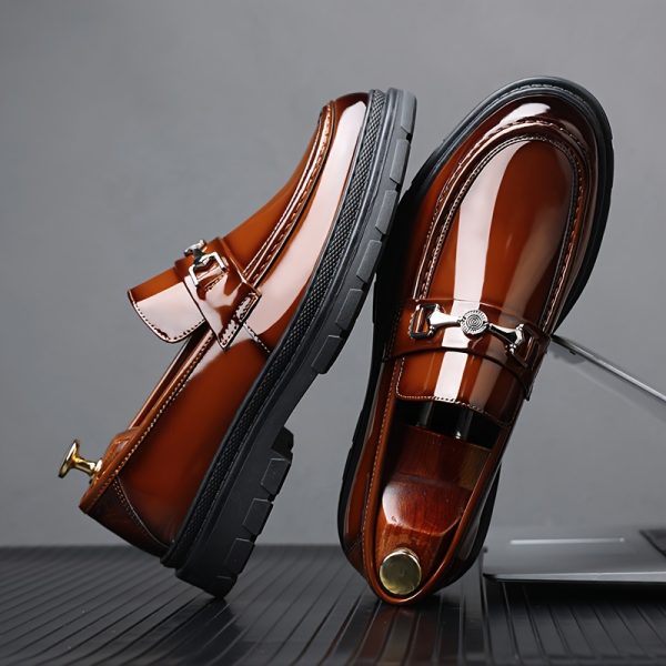 Men’s Platform Top Grain Cow Leather Upper Slip On Loafer Shoes, Comfy Non Slip Rubber Sole Durable Dress Shoes, Men’s Footwear