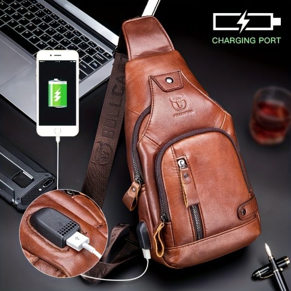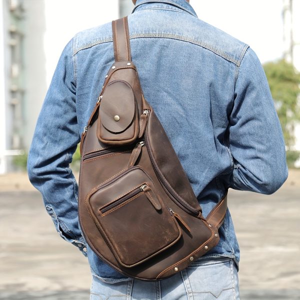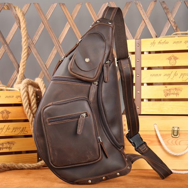 1pc Genuine Leather Men’s Chest Bag, Large Capacity Messenger Bag for Outdoor Sports, Cowhide Crossbody Shoulder Bag