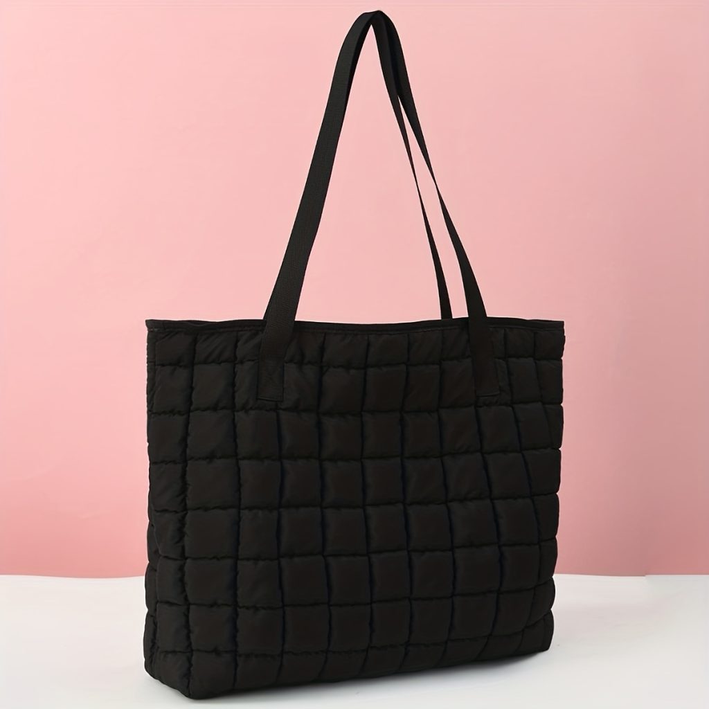 Large Capacity Quilted Tote Bag for Men & Women, Minimalist Zippered Shoulder Bag for Travel, Gym, and Everyday Use