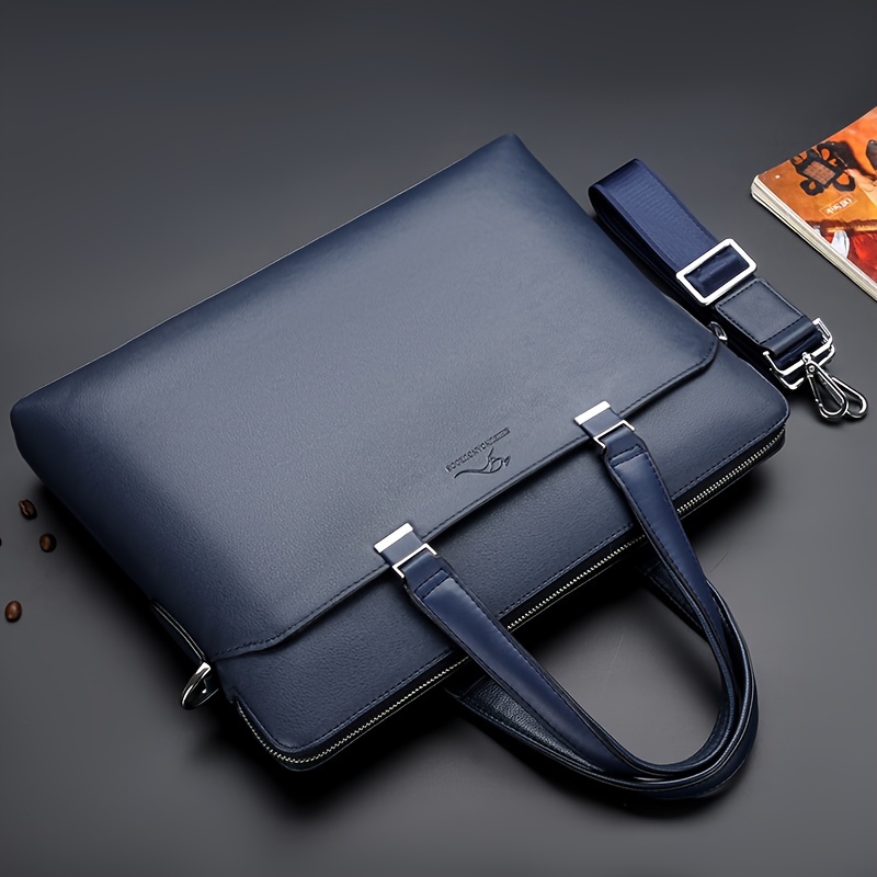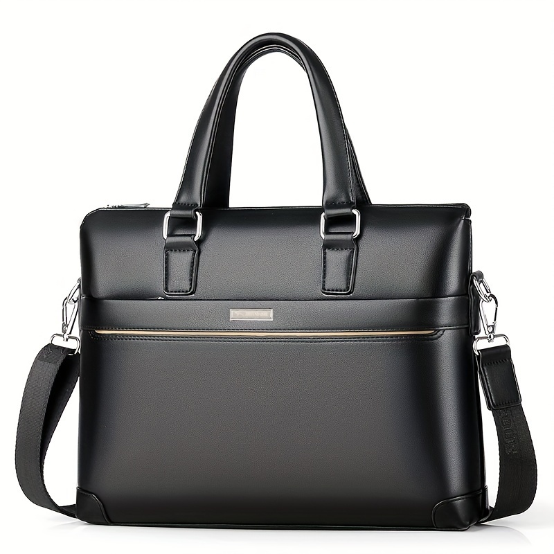 BAODIDAISHU Men’s Sleek Black Briefcase – Adjustable Strap, Faux Leather, Casual Style for Daily Commute