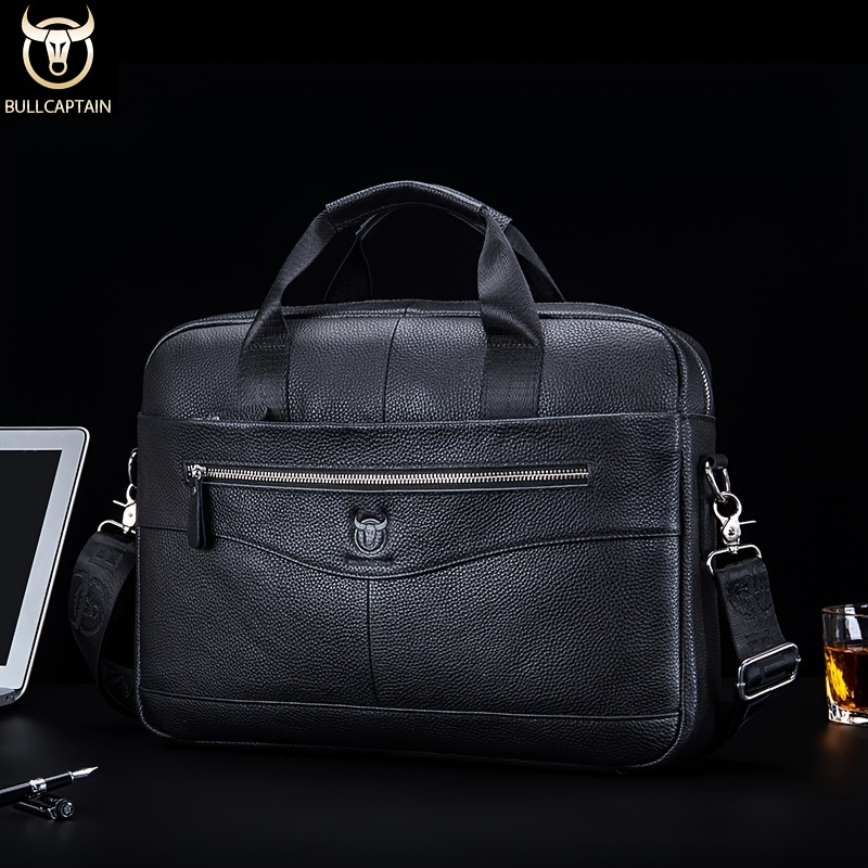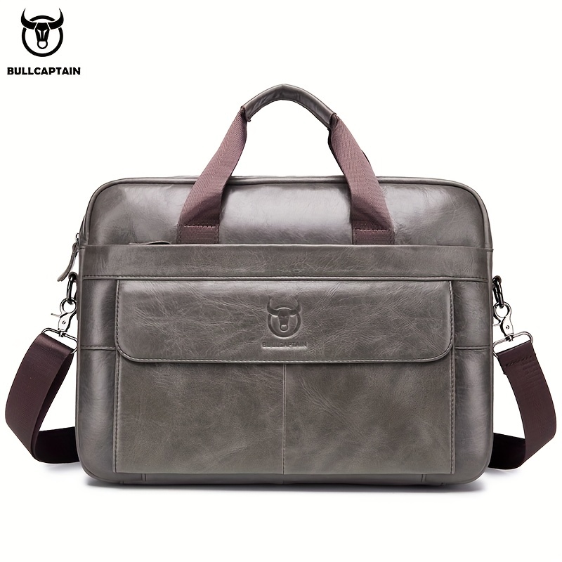 Bull Captain Men’s Leather Multi-functional Briefcase Crossbody Bag, Men’s Professional Business Bags For Work