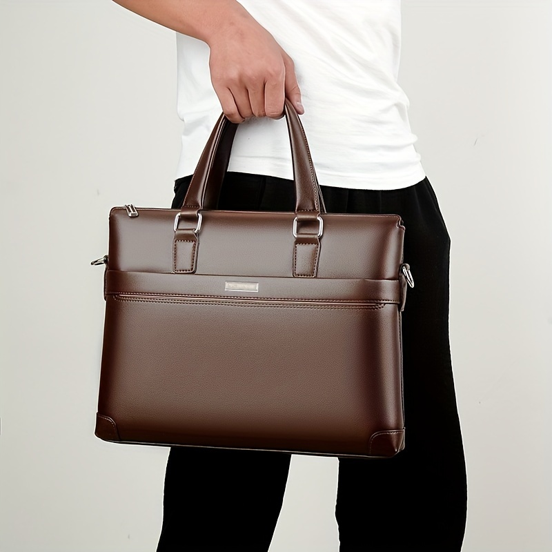 BAODIDAISHU Men’s PU Leather Briefcase, Casual Top-Handle Laptop Bag, Multi-Compartment Daily Commute Satchel with Adjustable Strap, No Wash – Black
