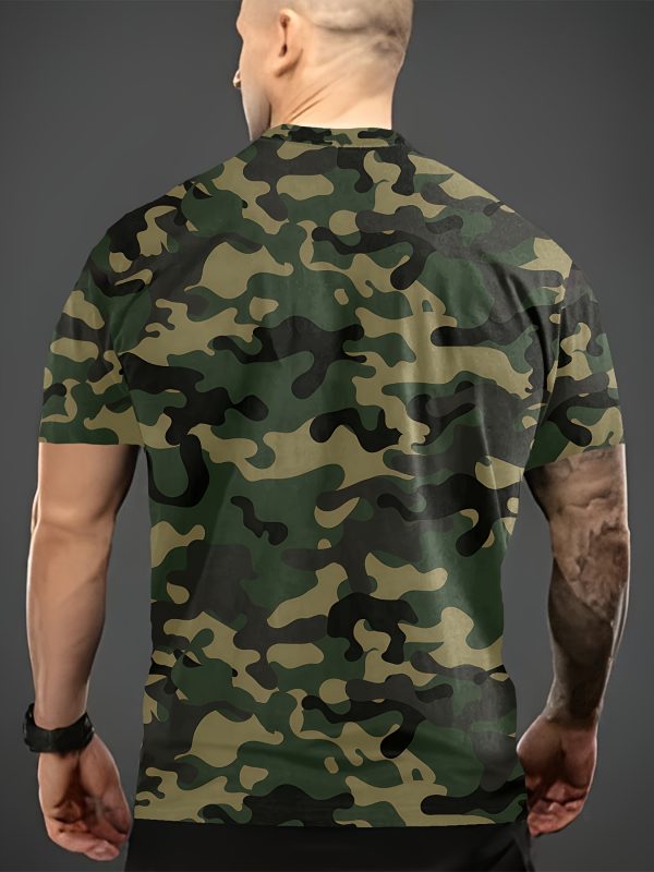 Men’s Patriotic 3D Star Print T-Shirt – Distressed American Flag Design, Casual Short Sleeve Summer Tee, Lightweight Polyester Blend, Round Neck, Machine Washable, Outdoor Clothing | American Flag Tshirt | Stretchable Fabric