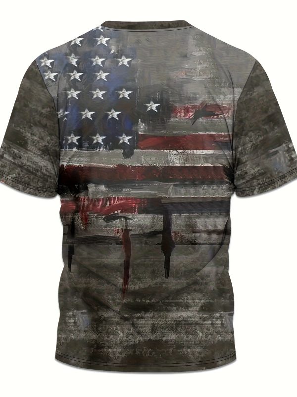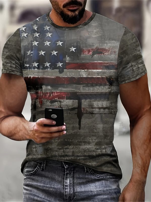 Men’s 3D American Flag Print T-Shirt – Retro Patriotic Crew Neck Short Sleeve Top, 100% Polyester Knit, Machine Washable, All-Season Casual Wear, Bold Graphic Design, American Flag Shirt, Comfortable Fit, Durable Fabric