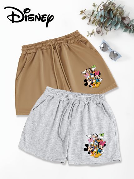 2 Disney Pack Slant Pockets Drawstring Shorts, Casual Shorts for Spring & Summer, Women’s Clothing