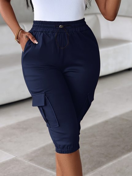 2025 Side Pocket Cargo Pants with Drawstring at The Waist, Cropped Length NS702