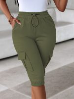 Home Women's Shorts 2025 Side Pocket Cargo Pants with Drawstring at The Waist, Cropped Length NS702
