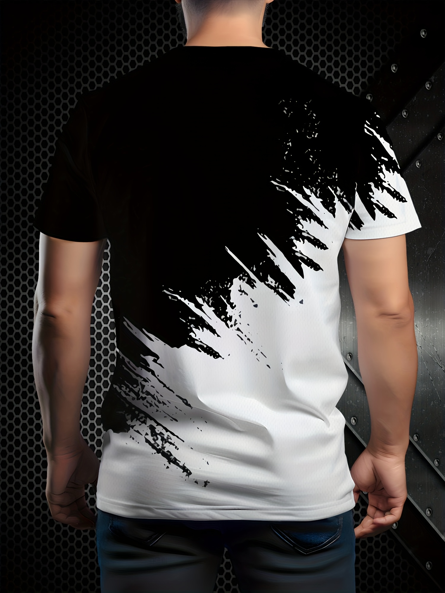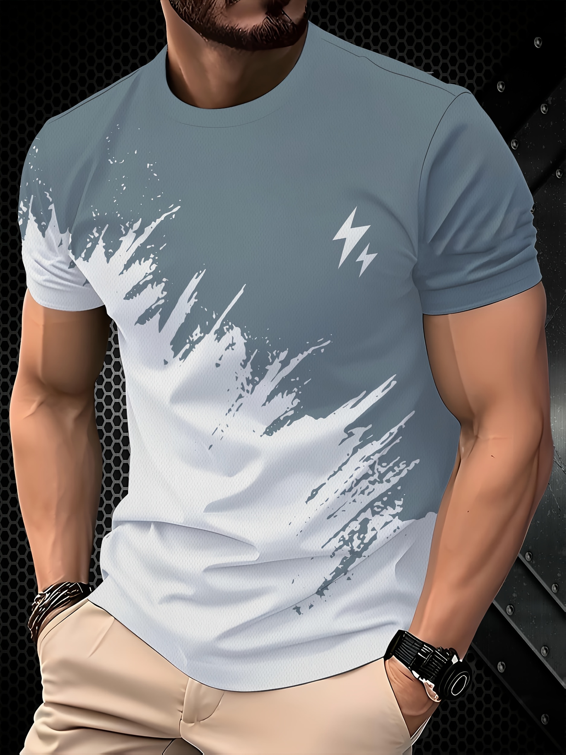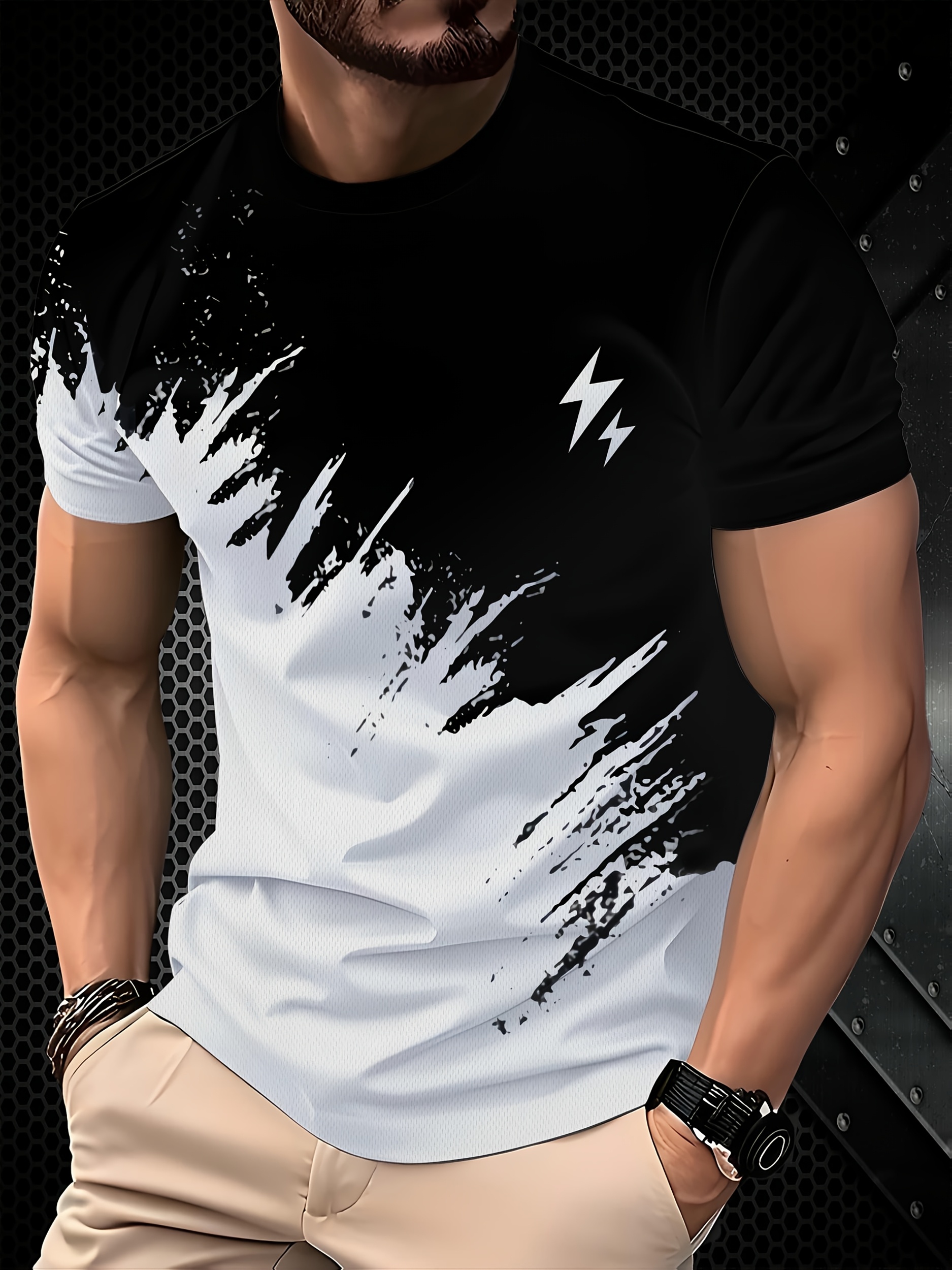 3D Graphic T-Shirt Black & White Men’s 3D Lightning Bolt Graphic T-Shirt | Breathable Casual Short Sleeve Tee, Regular Fit, Stylish Design, Streetwear Fashion, Durable Construction, Machine Washable