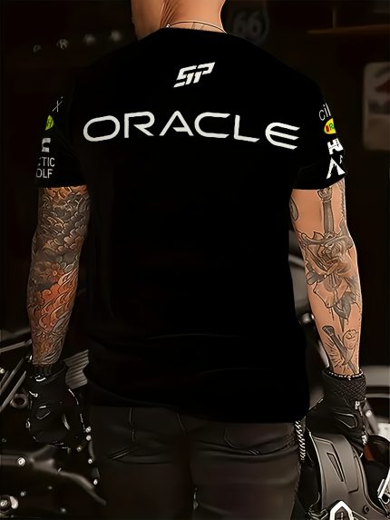 Men’s Checo Perez No. 11 Racing Graphic T-Shirt – Full-Body Print Breathable Short Sleeve Tee, Regular Fit Summer Casual Top with Sponsor Logos (Oracle, BWT,), Motorsport Fan Apparel, Sporty Casual Style, Machine Washable Fabric
