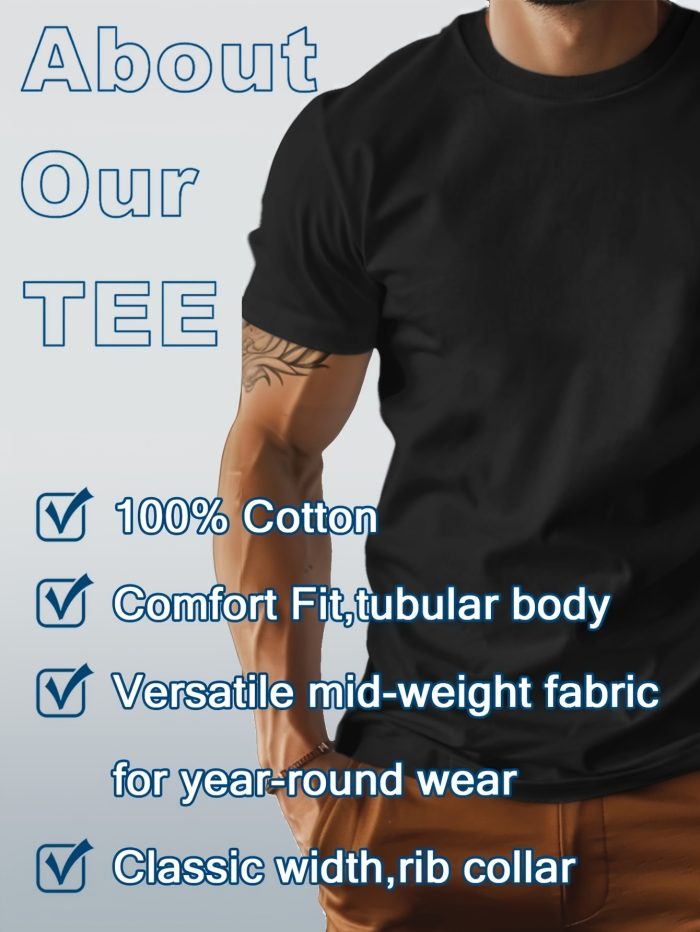 Creative Style Letter Pattern, Men’S Casual T-Shirt, 100% Cotton Knitted Fabric, Short-Sleeved Shirt in Spring And Summer, Stylish And Versatile.