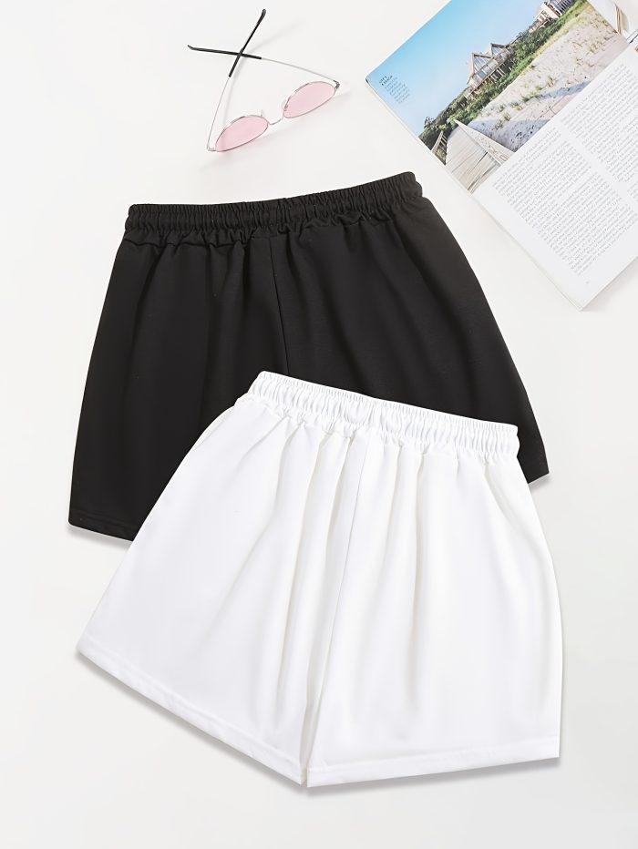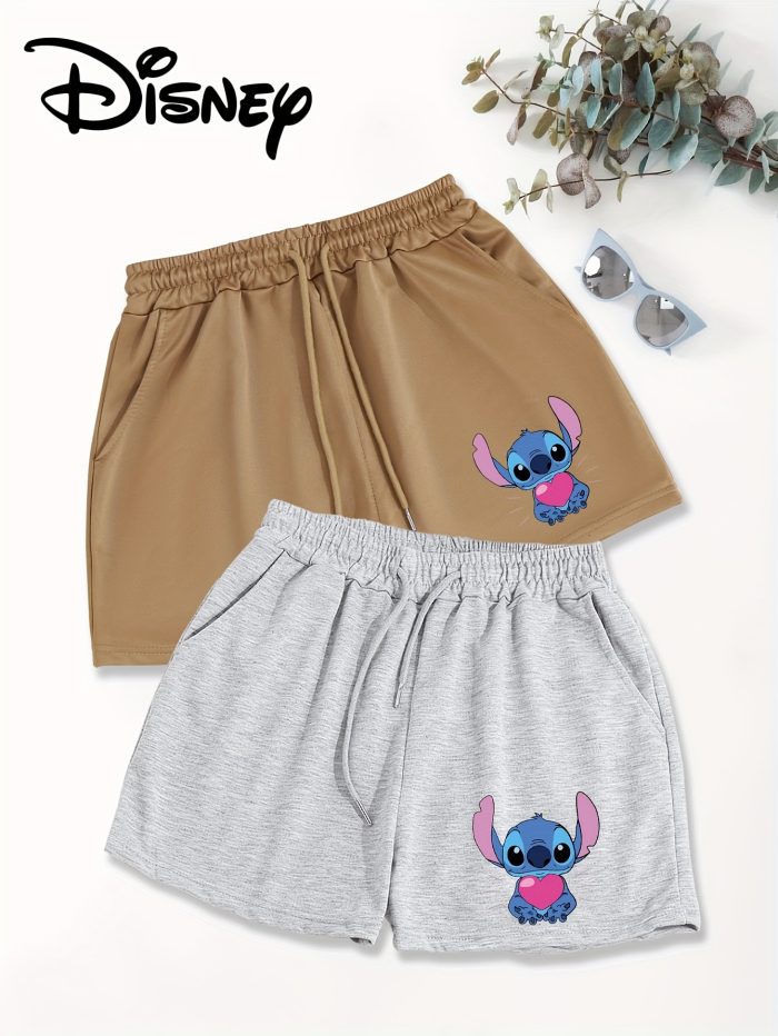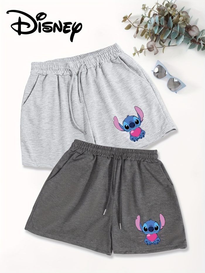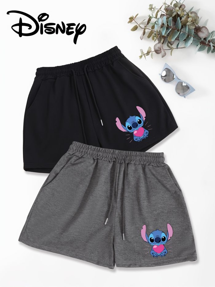 Disney 2-Pack Women’s Casual Shorts with Slant Pockets & Drawstring Waist – Loose Fit Cartoon Character Design, Black & White, Machine Washable for Spring & Summer, Comfortable Loosefit, Cute Shorts