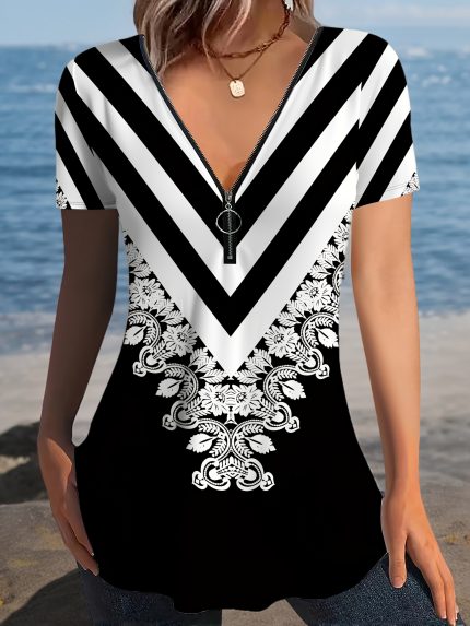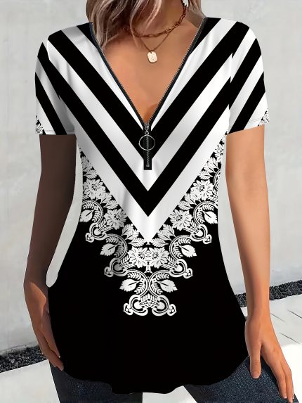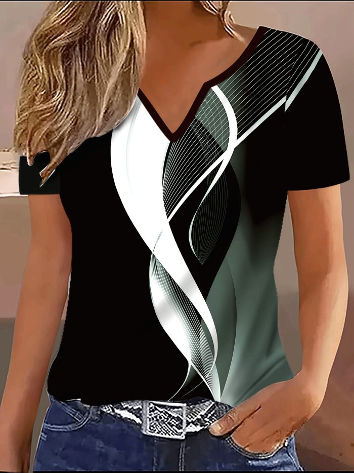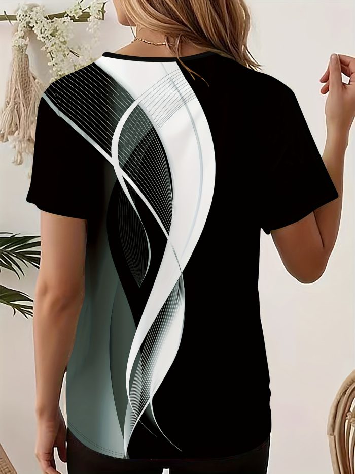 Home Women's T-Shirt Elegant Women’S V-Neck Short Sleeve T-Shirt, 3D Printed Graphic Tee, Summer Casual Fashion Top with Abstract Design, Versatile & Stylish for Casual Attire, Versatile Fashion Top | Trendy Vneck Shirt | Stylish Casualwear