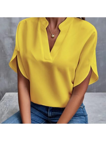 Women’S Summer Fashion V-neck Half Sleeves T Shirt Solid Casual Loose Basic Tunics Tops