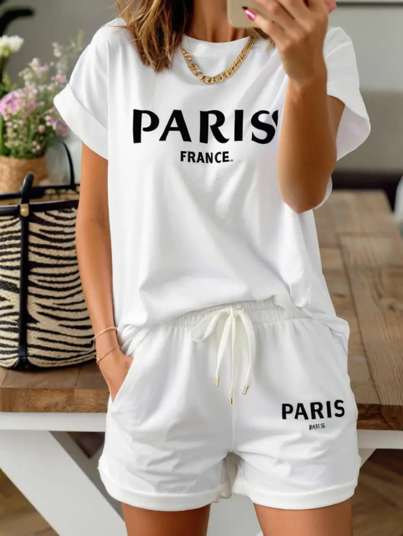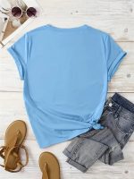 Fashionable Letter Cartoon Print Women’S Round Neck T-Shirt, Simple Design, Comfortable And Breathable, Suitable for Daily Leisure And Versatile, Showing a Natural And Elegant Style, a Must-Have for Summer Parties, Local Delivery