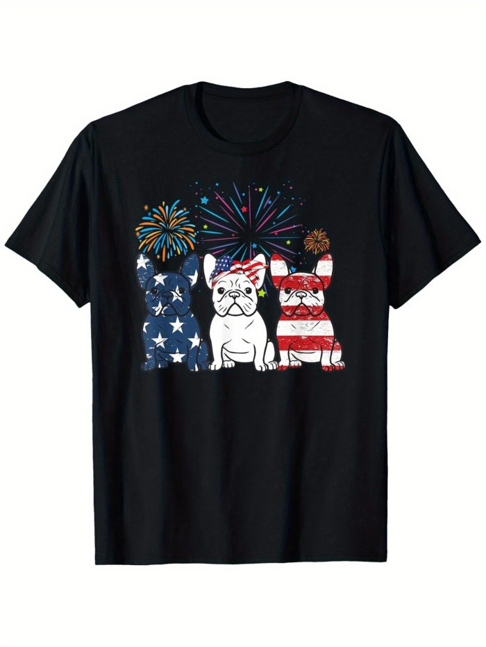 Home Men's T-Shirts French Bulldog American Flag 4th Of July Independence Day T-Shirt 100% Cotton Round Neck T-shirt Halloween Thanksgiving Christmas Gift for Men Women Family Friends, Valentines Day Gifts for Boyfriend Girlfriend, S-XXXL