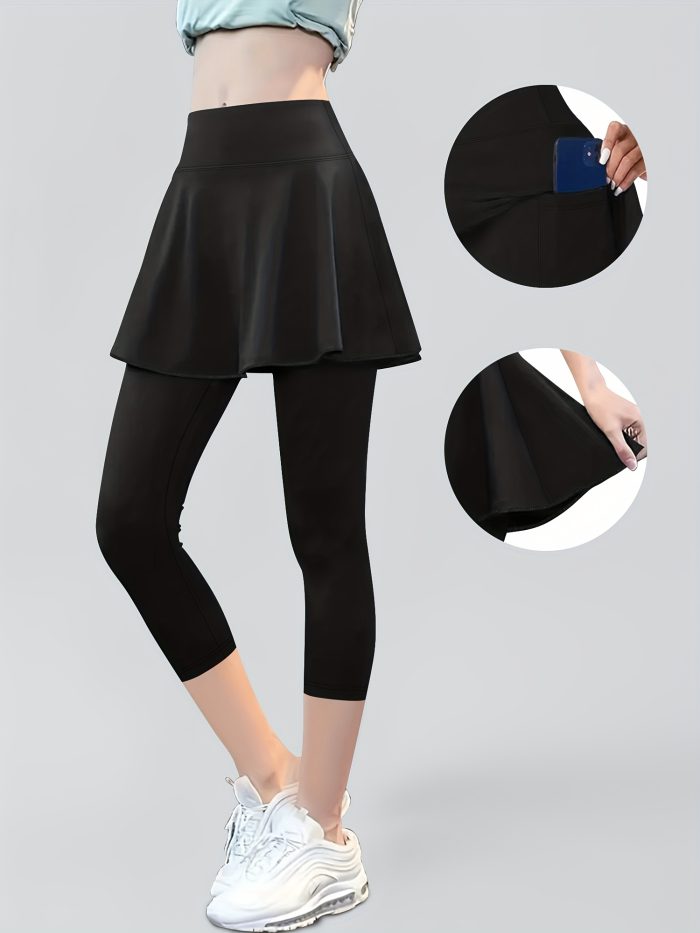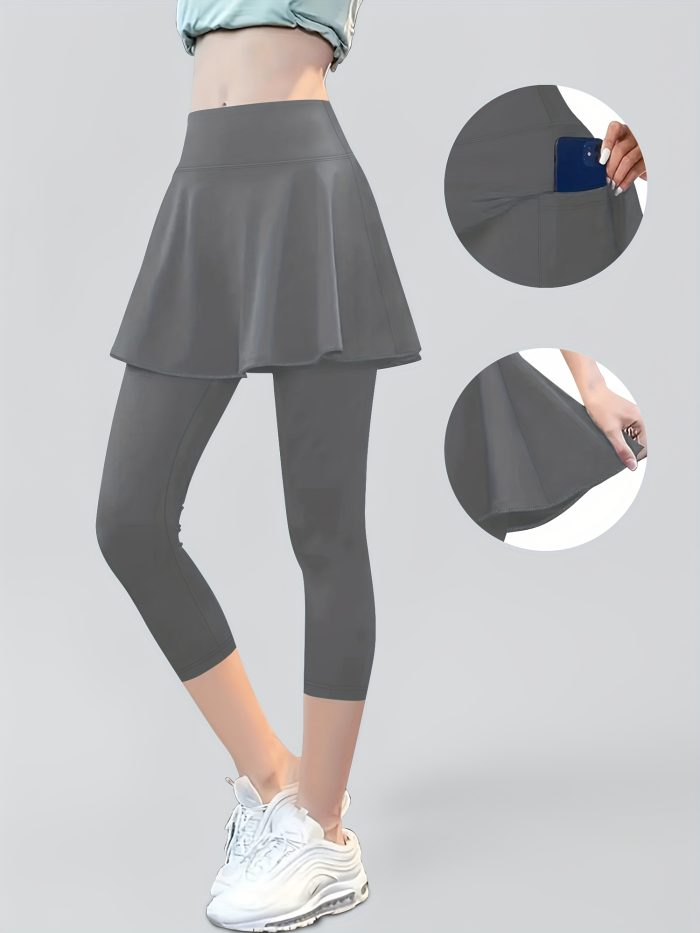 High-Stretch Leggings High-Stretch Women’s High Waist Capri Leggings | Solid Color Skirt with Side Pockets, Machine Washable for Casual & Casual Attire, Spring Summer Autumn, Comfortable Fabric