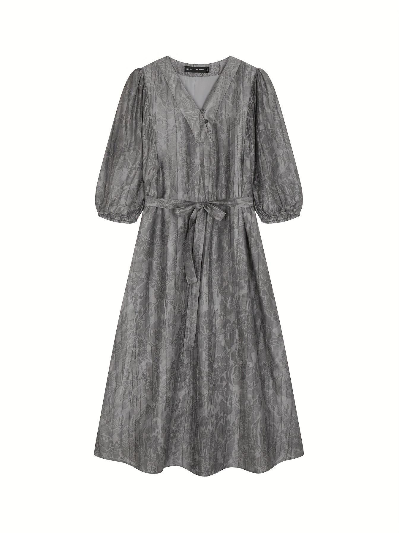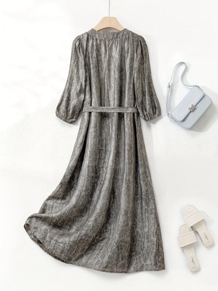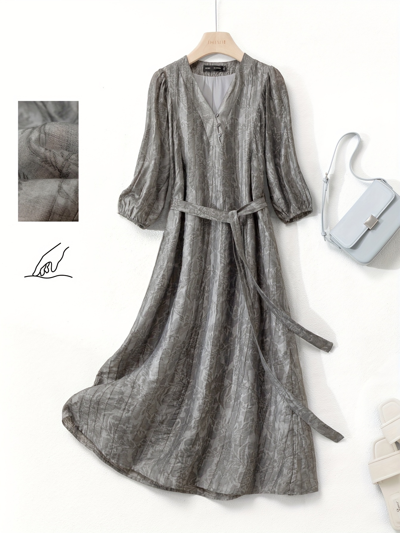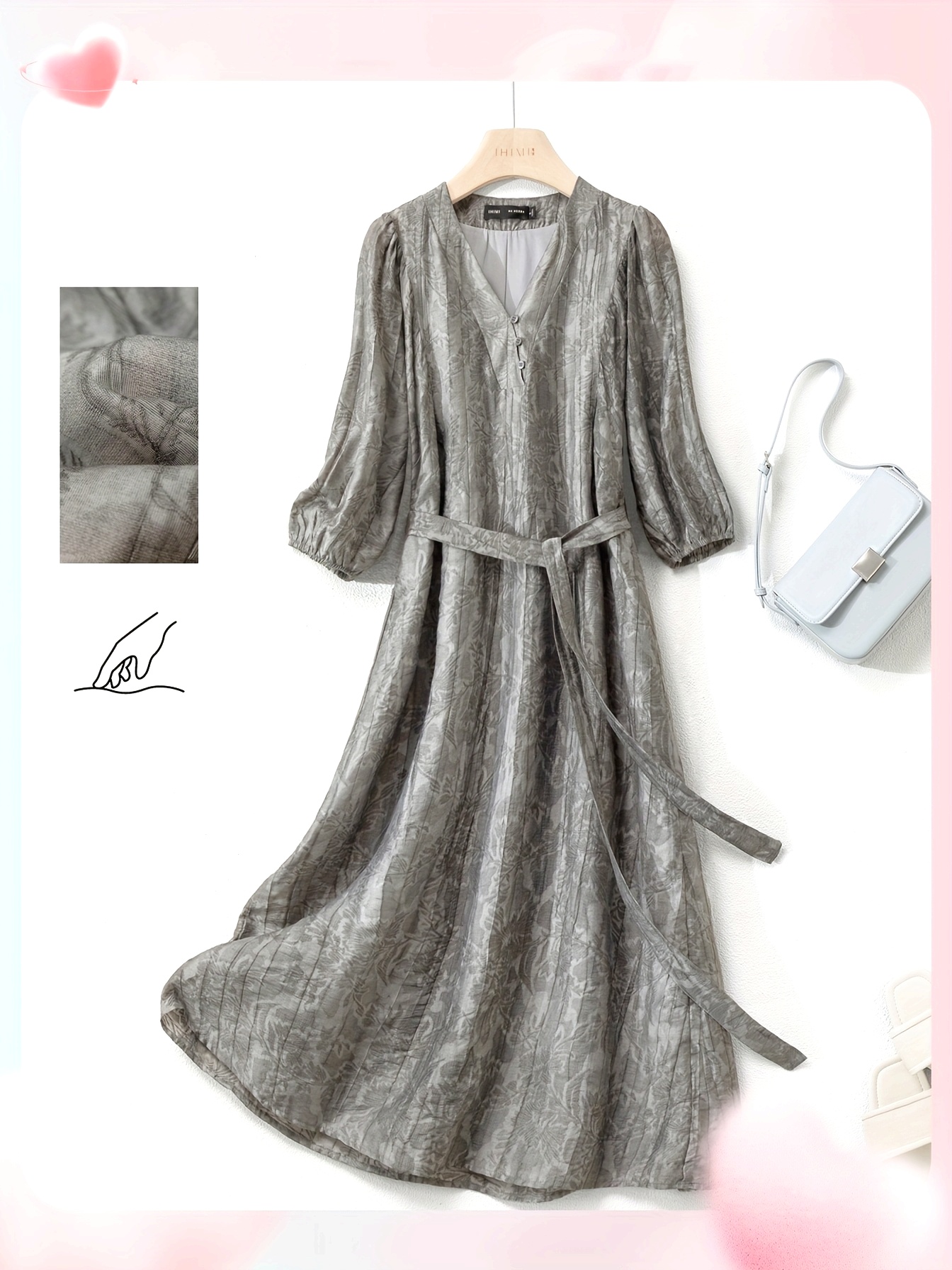 IHIMI Dress with Seven-Sleeve Elegant Wrinkle Texture Spring Collection Women’s Clothing