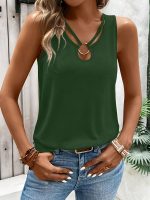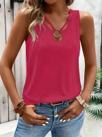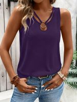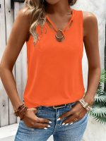 100% Polyester Solid Color High Neck Sleeveless Top – Lace-Up Detail, Woven Fabric, 120gu002Fm, Regular Length, All-Season Wear