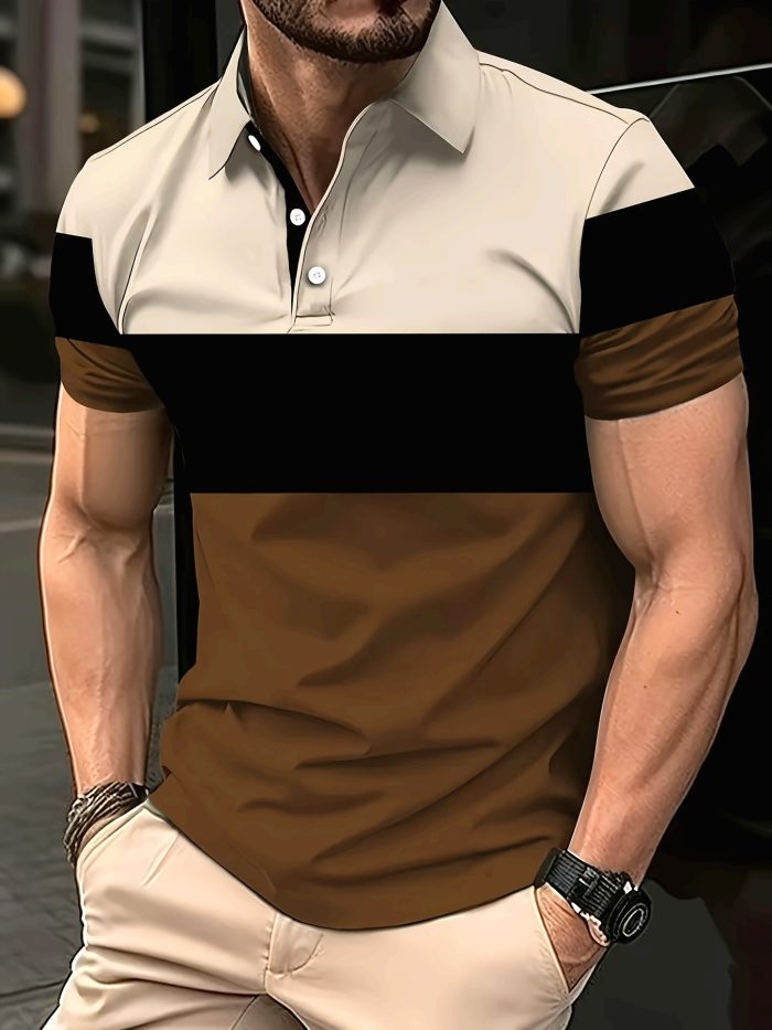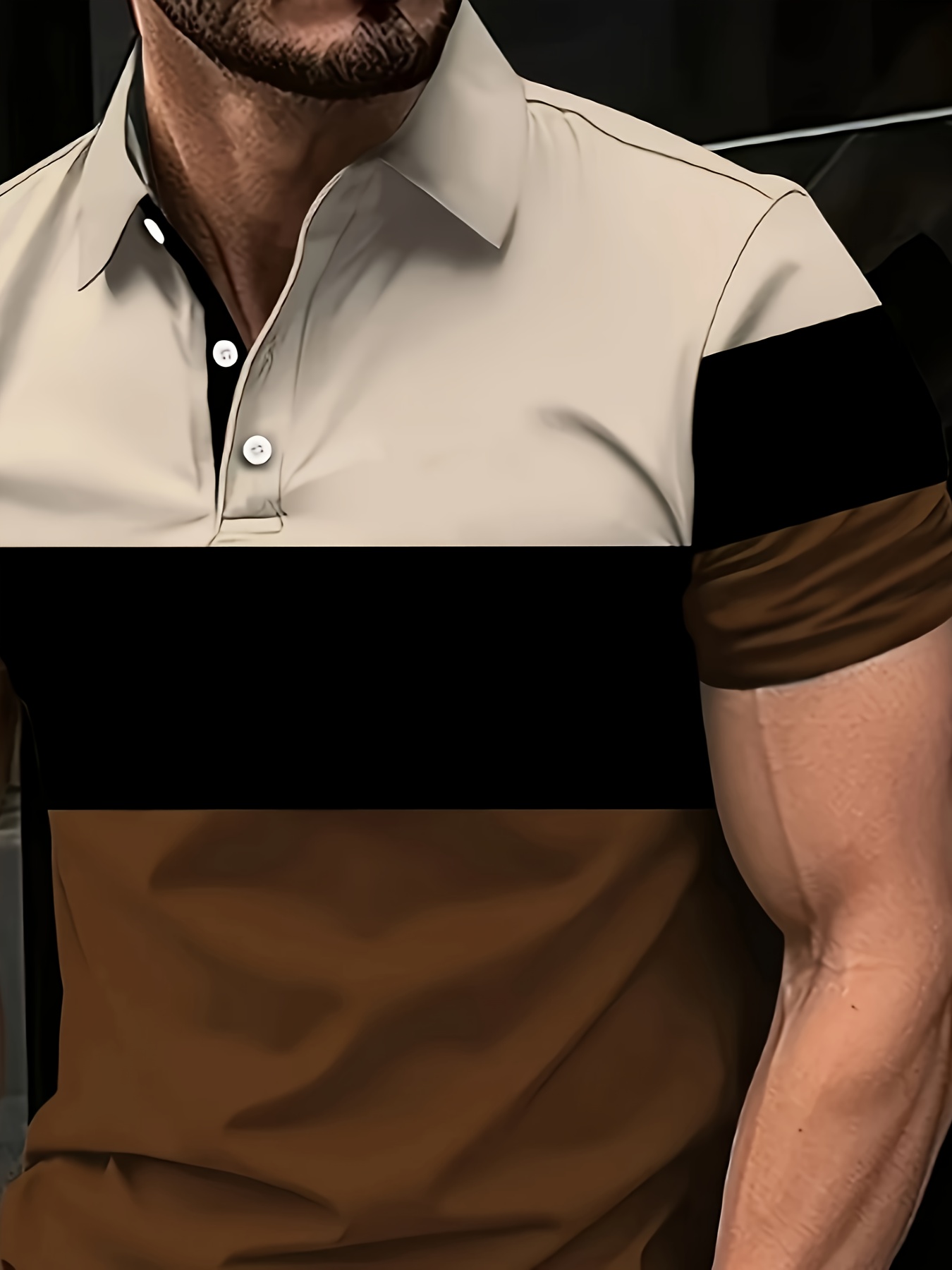 Summer Casual Short Sleeve Polo 1pc Men’S Summer Casual Short Sleeve Polo Shirt – Polyester Knit Fabric with Slight Stretch, All Over Print Lapel Collar, Button Detail, Regular Fit – Trendy Multi-Color Short Sleeve Polo Top