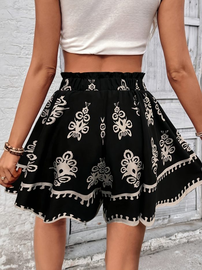 Women’s Casual Shorts with All-Over Floral Print – Black & White Loose Fit Elastic Waistband Non-Stretch Fabric for Everyday Casual Wear, Beach Outings & Leisure – Elegant Special Collection, Cute Shorts, Summer Apparel