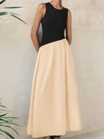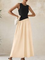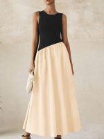 Home Women's Dresses Women’s Elegant Maxi Sundress – Sleeveless Black & Beige two-tone dress, Flowy A-Line skirt for Beach, Parties, Everyday – All-Season Casual to Formal Outfits, Beach Dresses