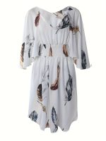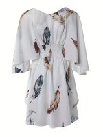Be the first to review “Women’s Elegant V-Neck Batwing Sleeve Dress – White with Brown Botanical Print, A-Line Mid-Length Summer Dress, Fitted Top & Flowy Hem, Hand Wash Only, Casual Chic Wear, Natureinspired Print” Cancel reply