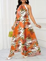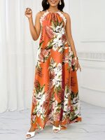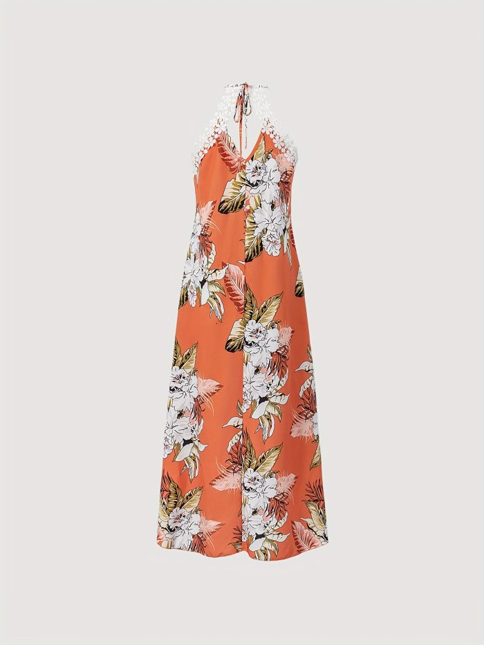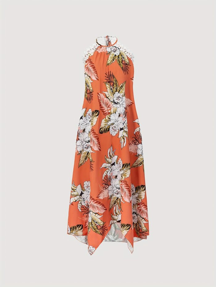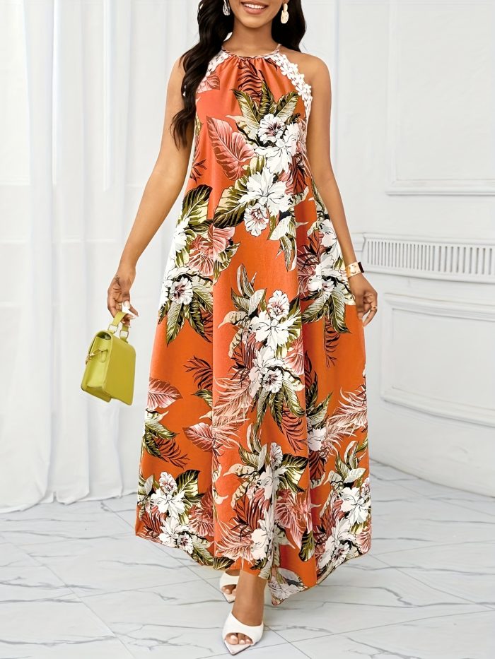 Fashionable Floral Dress Elegant Floral Print Halter Dress – Women’s Fashionable Suitable for All Seasons