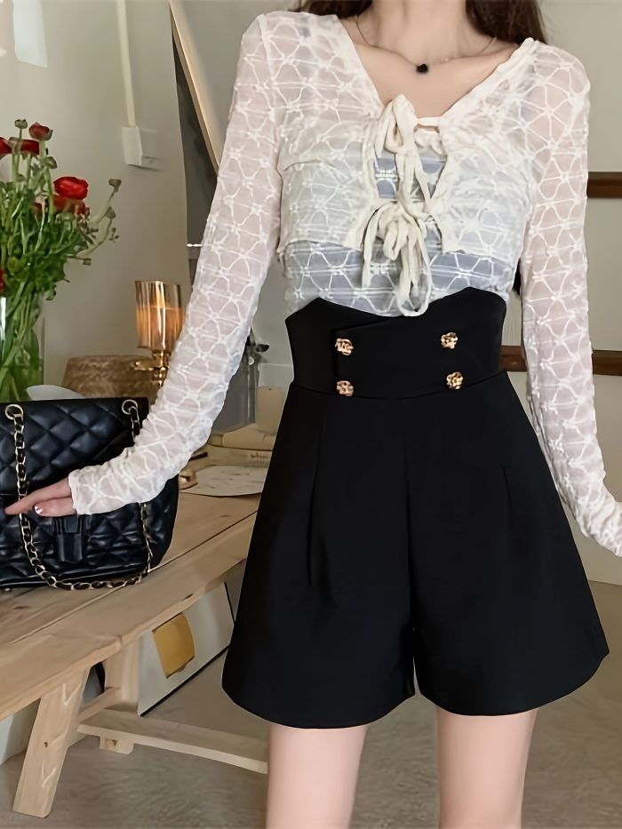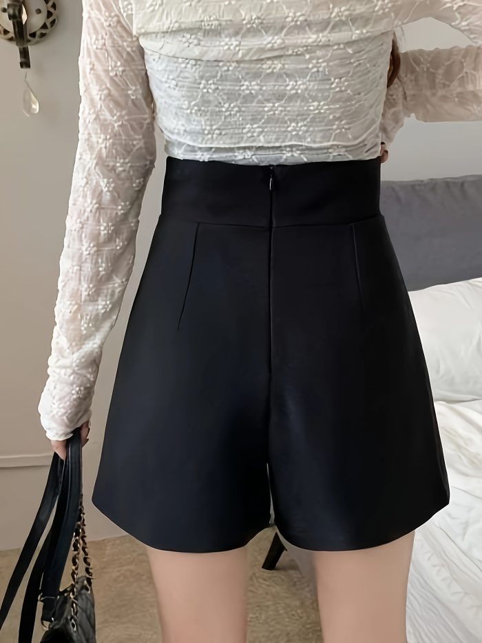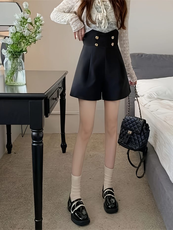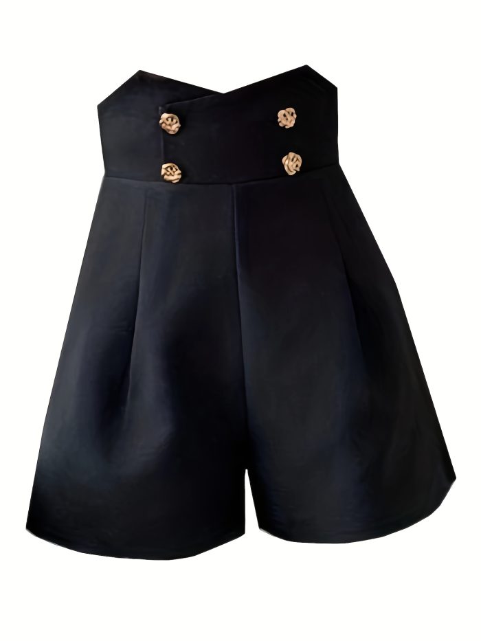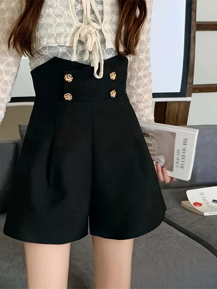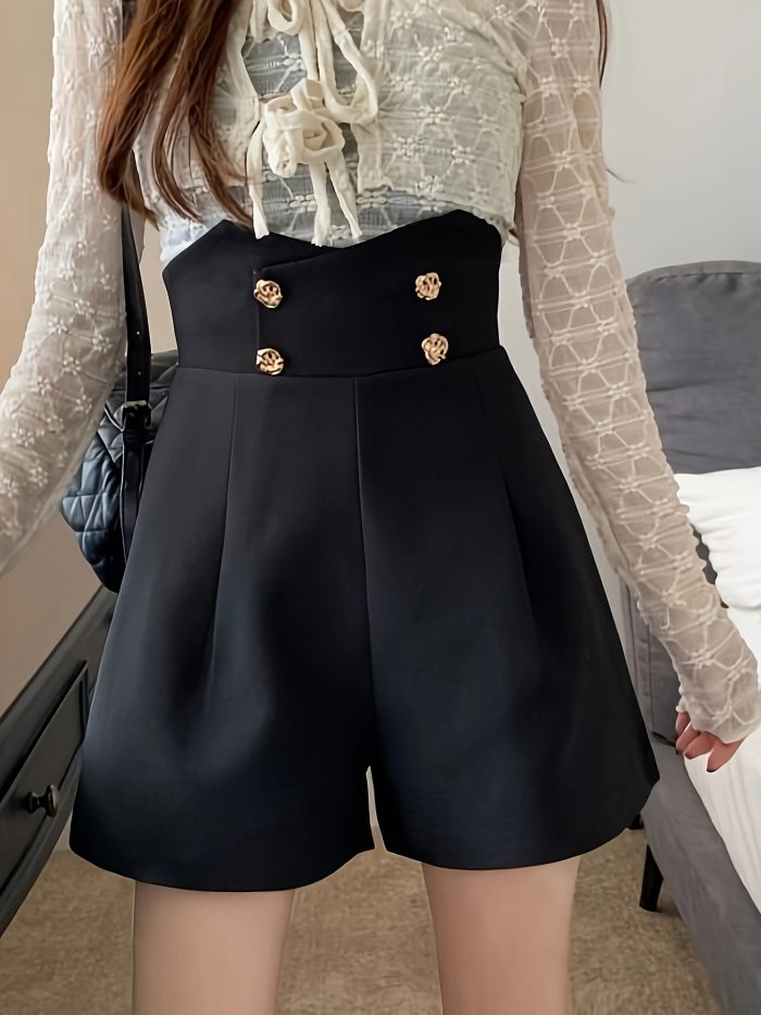 Women’S High-Waist Casual Shorts with Front Button Detail & Back Zipper – Black, Non-Stretch Fabric, All-Season Comfort, Perfect for Casual Attire, High Waisted Shorts