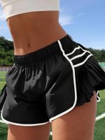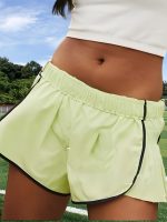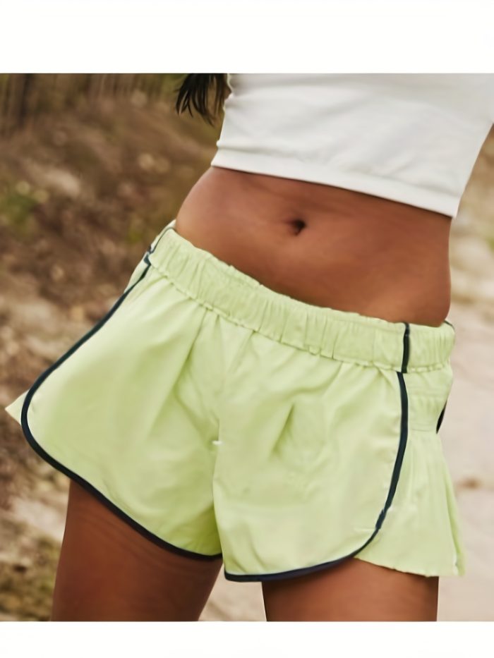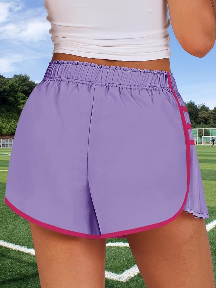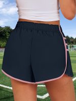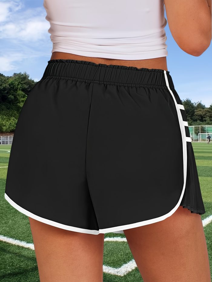 Women’S Pleated Contrast Color Shorts Elastic Waist Quick Dry Shorts