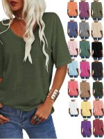 Women’S Summer Fashion V-neck Half Sleeves T Shirt Solid Casual Loose Basic Tunics Tops