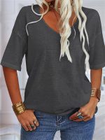 Home Women's T-Shirt Women’S Summer Fashion V-neck Half Sleeves T Shirt Solid Casual Loose Basic Tunics Tops