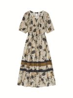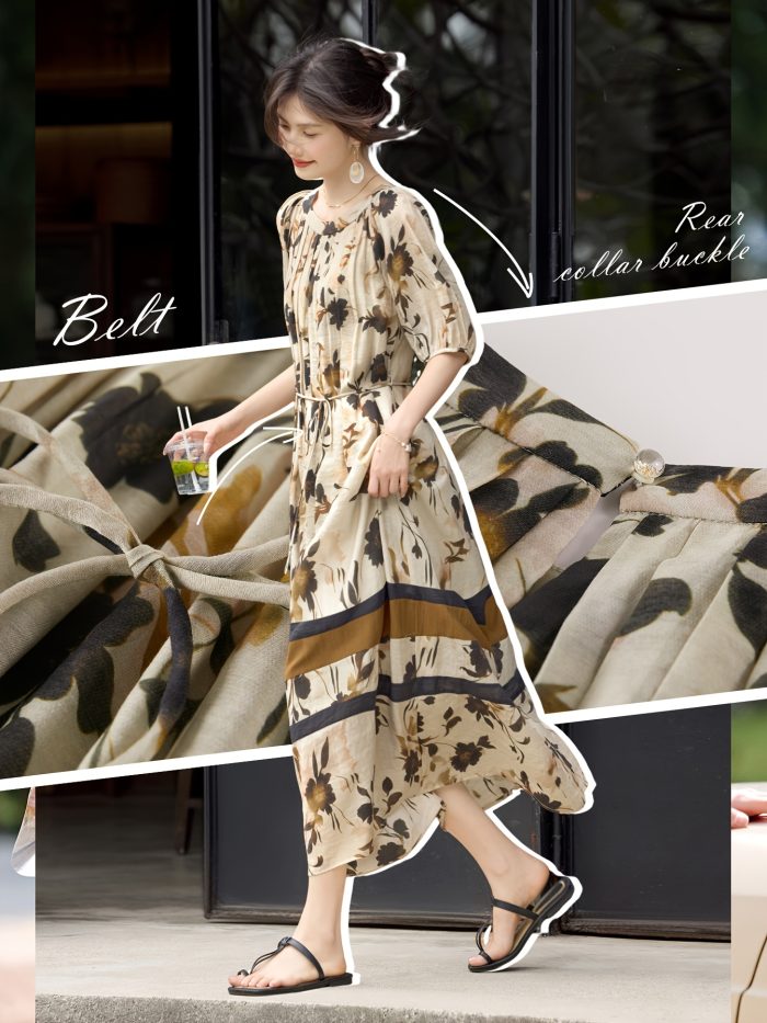 IHIMI Dress with Seven-Sleeve Elegant Wrinkle Texture Spring Collection Women’s Clothing