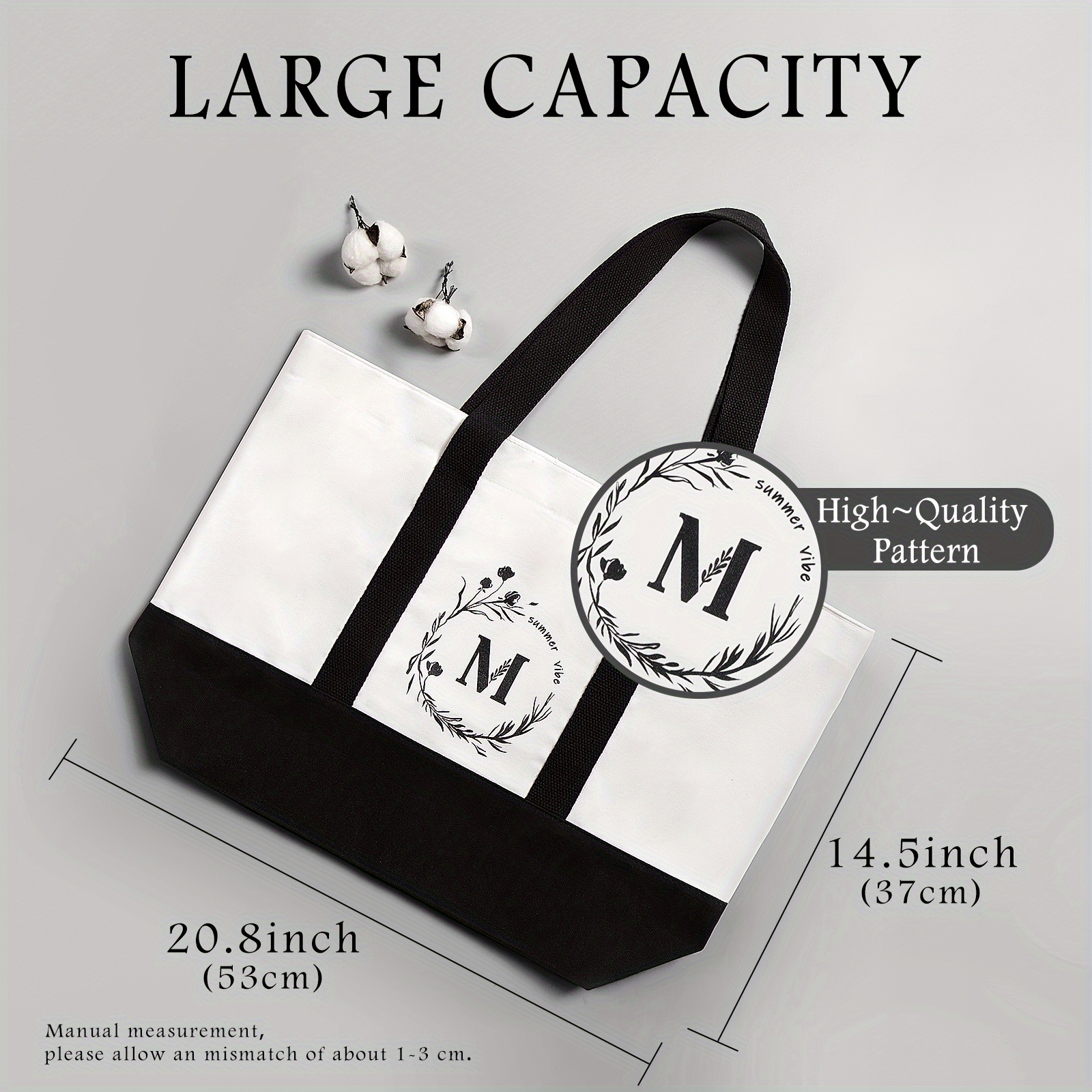 Large Capacity Canvas Tote Bag with Zipper Pocket, Stylish Shopping Bag for Women, Birthday, Beach, Wedding, Gift for Mom, Teacher, Friend