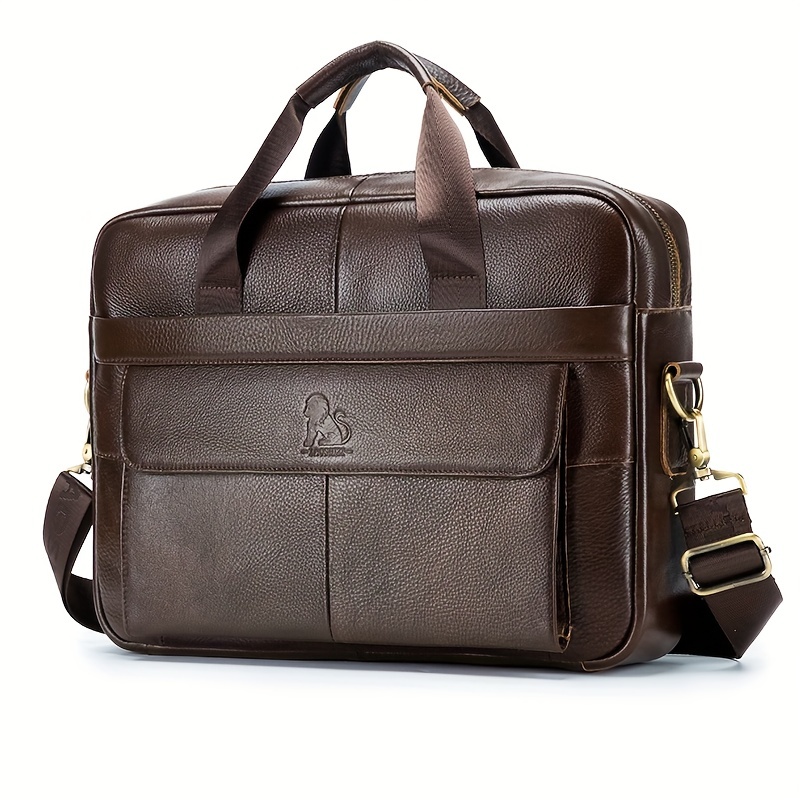 Genuine Leather Business Briefcase Messenger Bag Handbag For Men Travel Work 15in Computer Bag Crossbody Shoulder Pack Pouch
