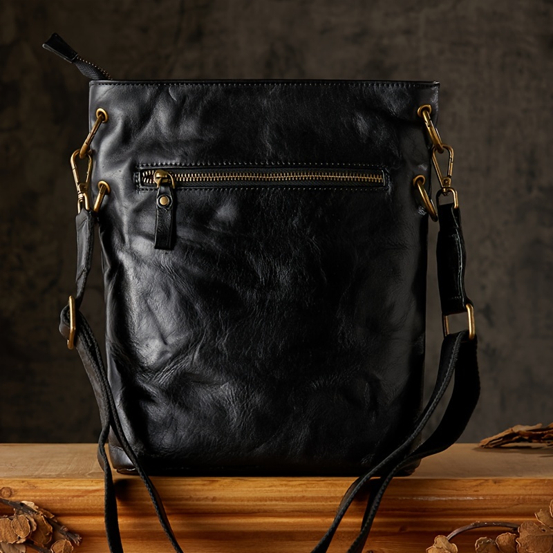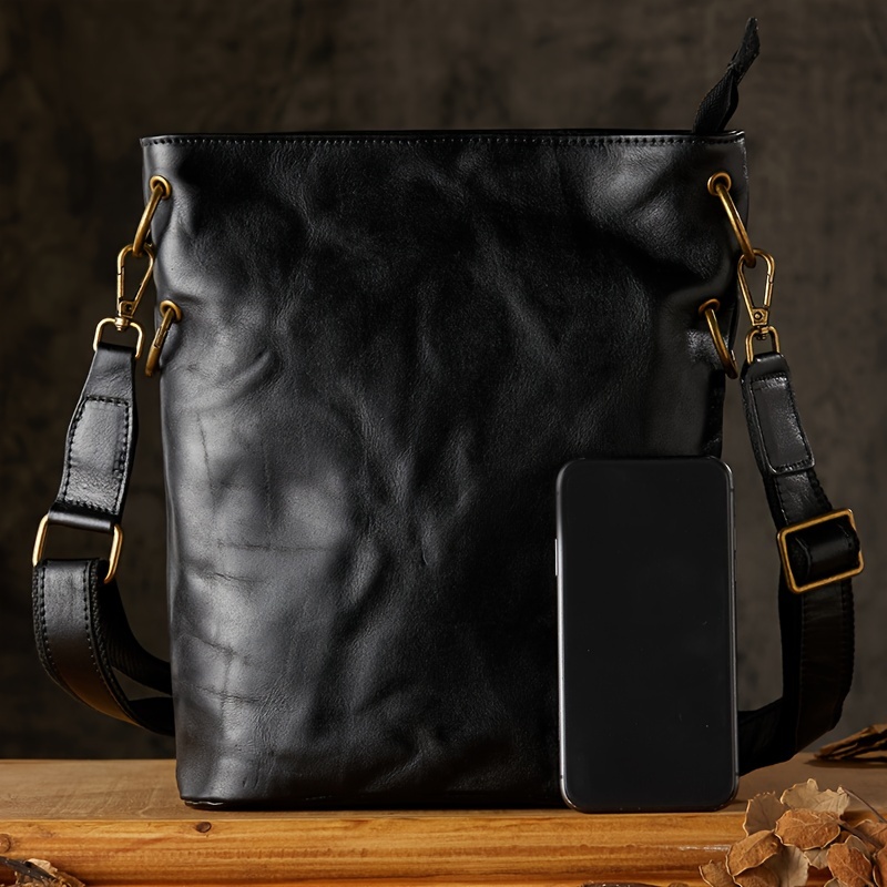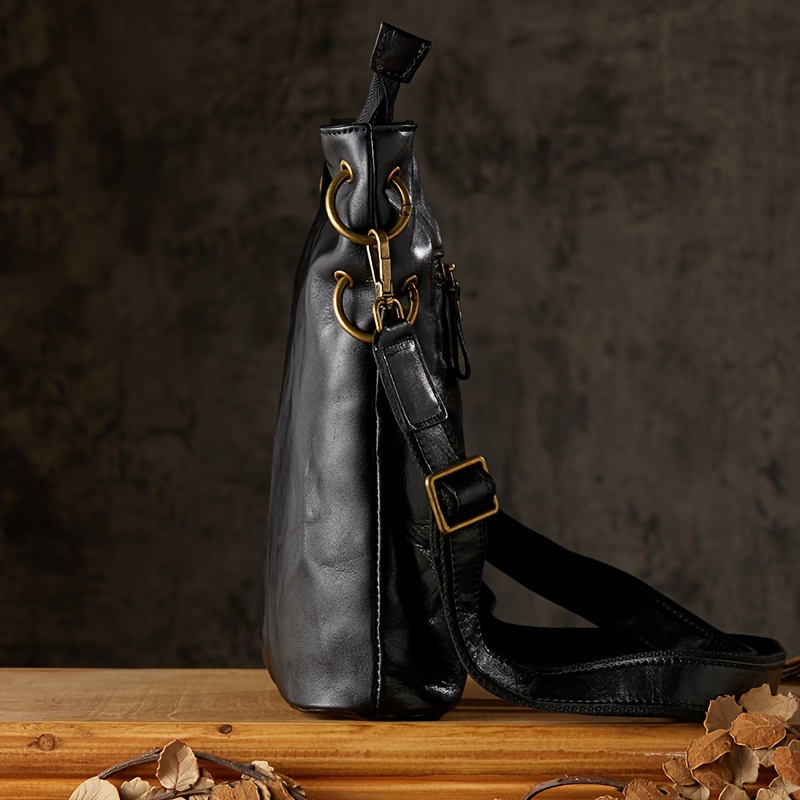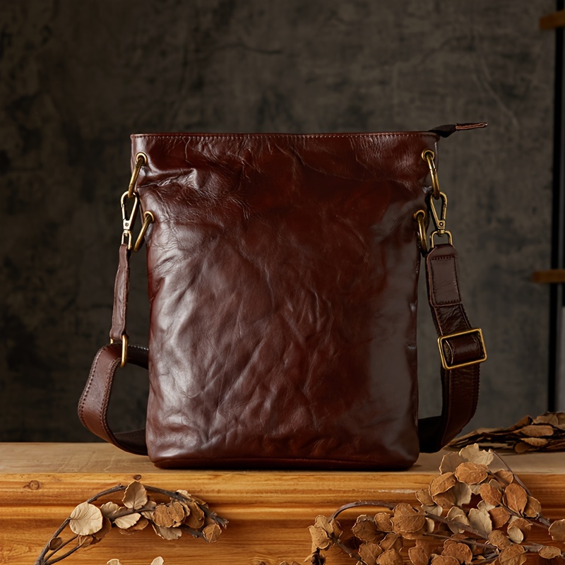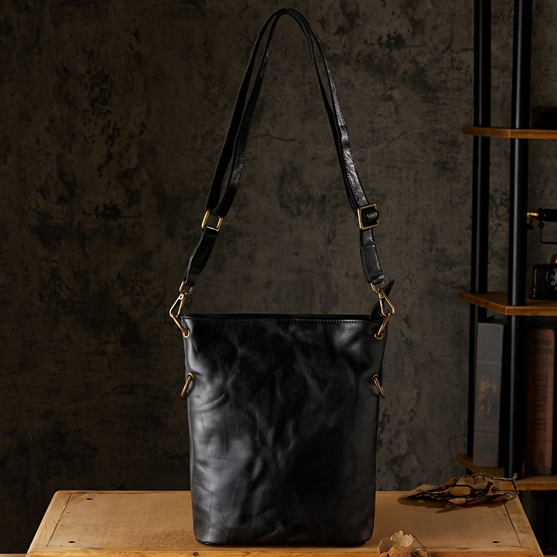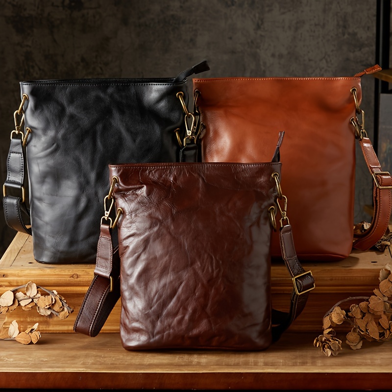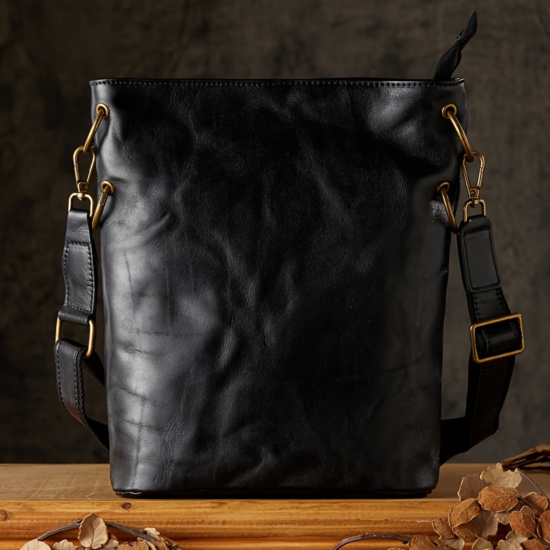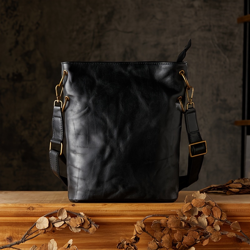 Pleated Style Genuine Leather Vintage Style Bucket Bags For Men Women, Top Layer Cowhide Tanned Underarm Bag Shoulder Bag For Daily Commuting & Hanging Out
