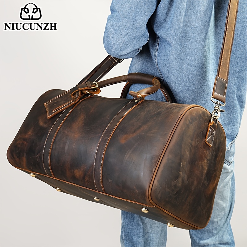 1pc Vintage Cowhide Tote Bag, Large Capacity Travel Duffel Bag, Crossbody Shoulder Bag, with Scratch Print Top Layer